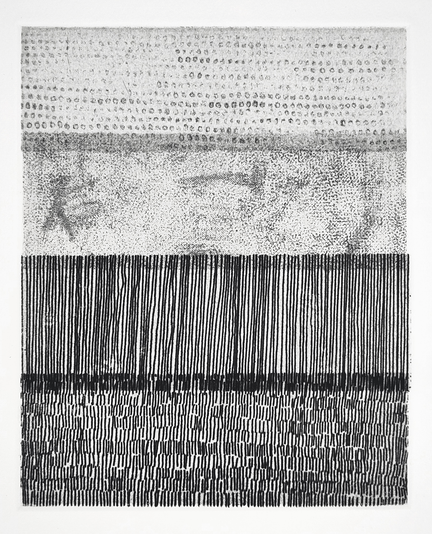 ‘Four Part Breath’ is composed from the four steel plates of my ‘What breath remains‘ series. I use selective inking and tissue stencils, trapping and printing each layer from a different plate so the marks overlap.