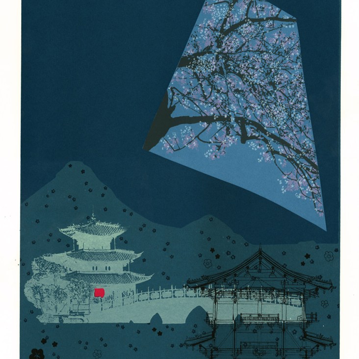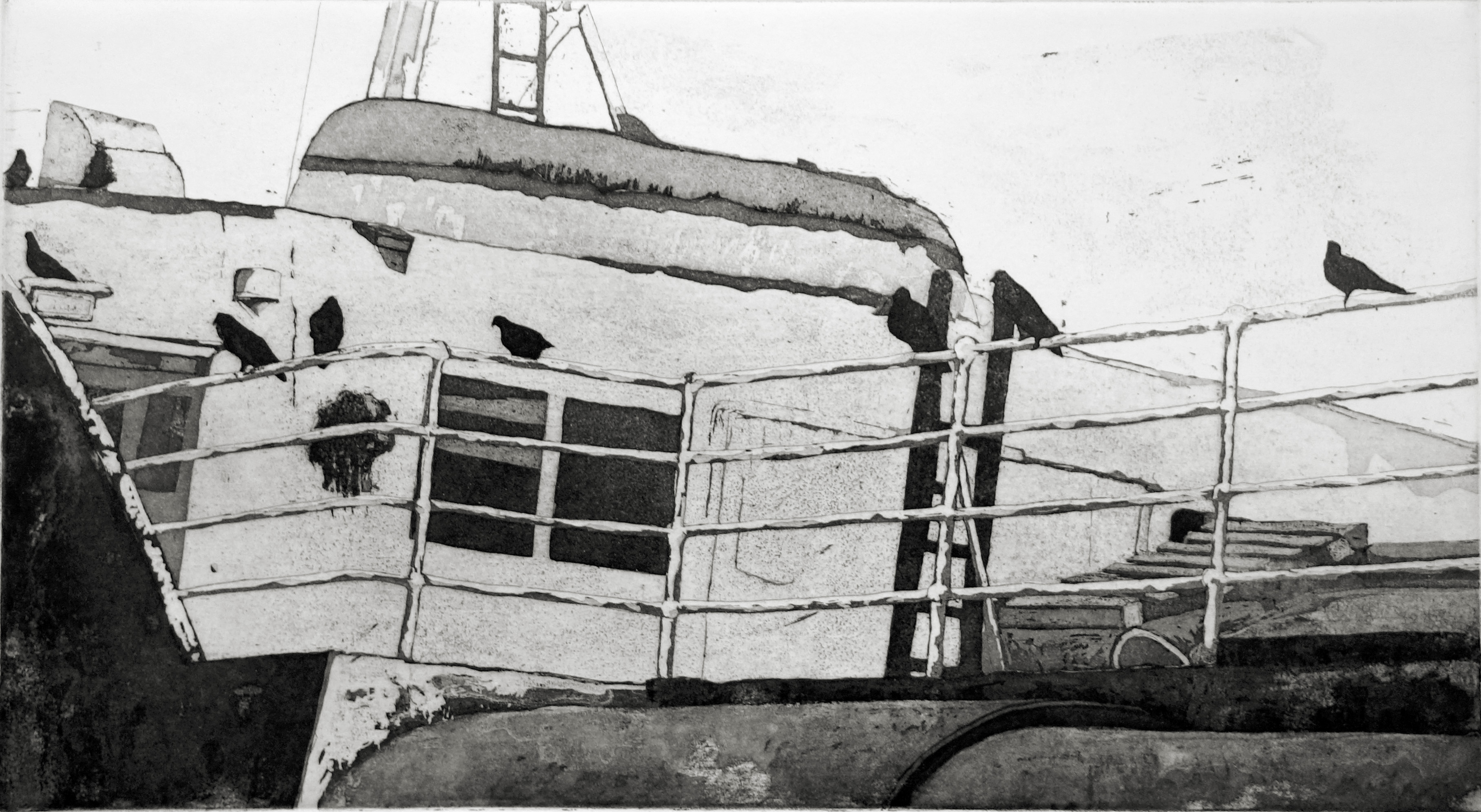 The first edition printed in my new studio. A two-plate etching made without acids or solvents, on reclaimed steel and zinc plates. Marking a transition from full-time technical teaching to a full-time artist practice.