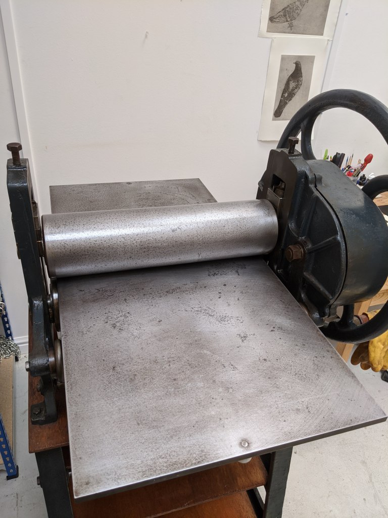 In June 2020, fully restored this press to good working order, and it is now installed in my new studio space. Using technical skills from 15 years as a printmaking technician allows me to problem solve at a high level, from risk assessing new substances, to understanding barriers in accessing a process.