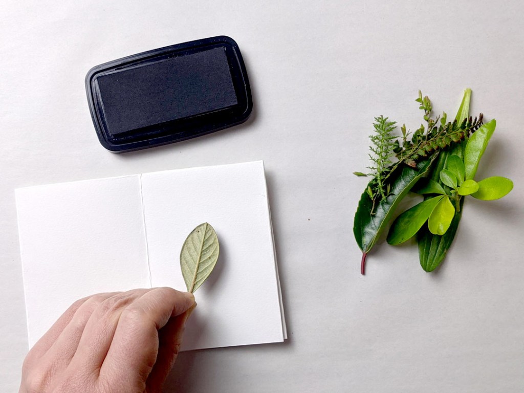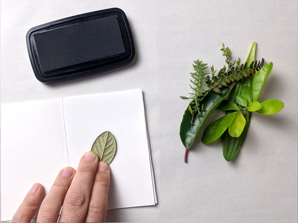 TOP TIP: Place your leaves on a piece of scrap paper. Turn the stamp pad upside down, and press the ink onto the leaves!