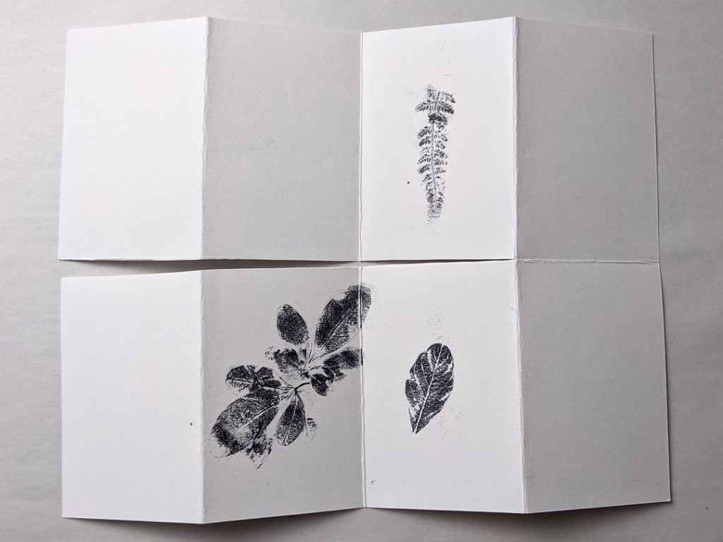 Press your leaves into the stamp pad, and print them onto the pages of your book.