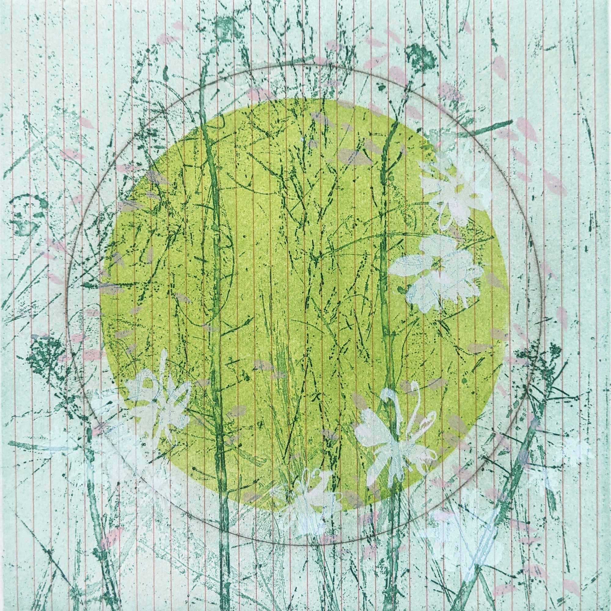 Each study and song is composed and developed on the press, made from a library of steel plates that will never be retired. The plates are etched with the impressions of plant life collected during my daily commute to the studio along the Thames Path. In the spring, the sidewalks creak and groan as life bursts forth – wild lavender, dandelions, poppies, grasses, weeds, ferns, all reaching up from under the concrete.