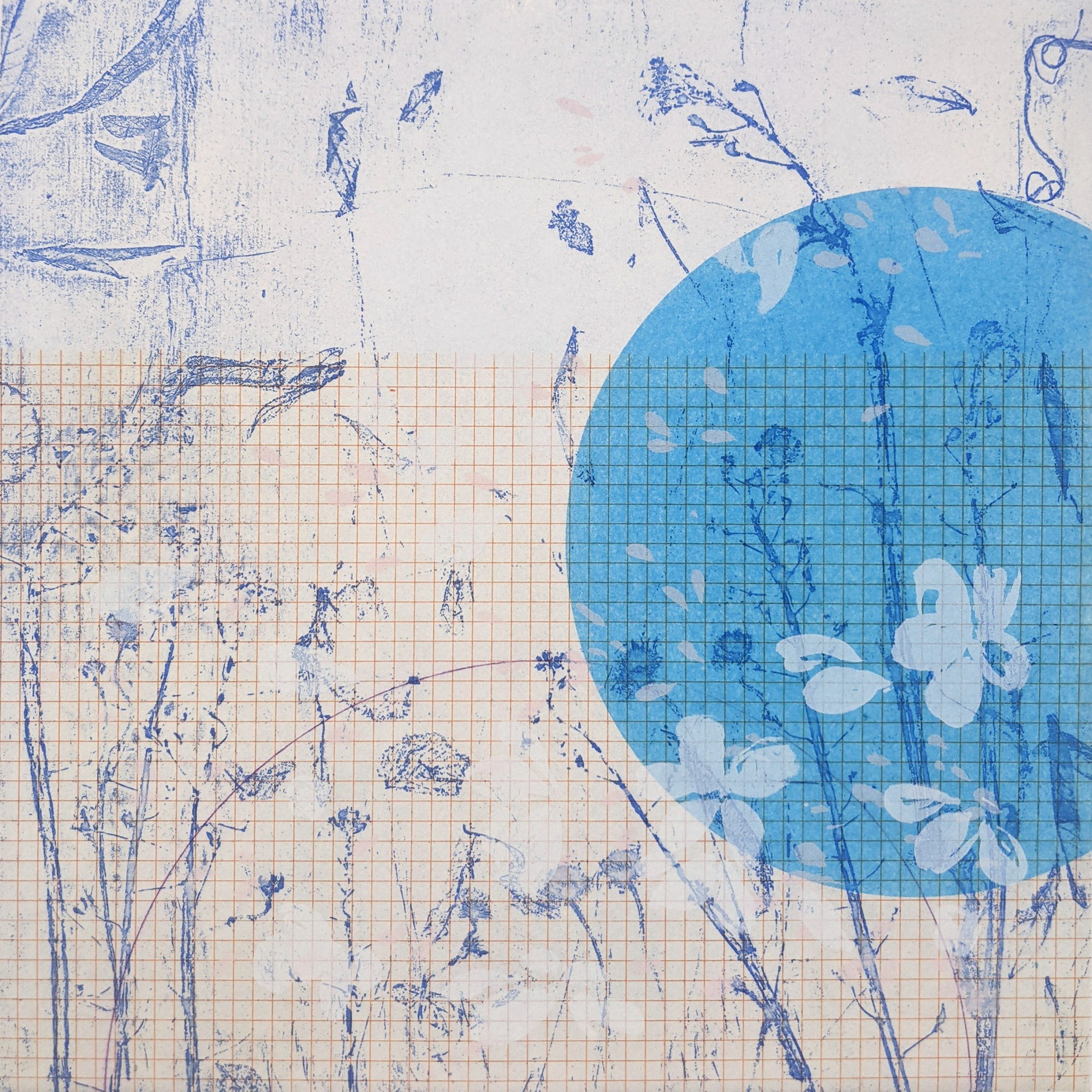 Songs are 28cm x 28cm, and produced over the course of three days; still very small editions. Each song is made of four plates, also from a reusable library. These images also incorporate the use of stencils to mask, hide, and create shadows, lurking under gently screenprinted layers.