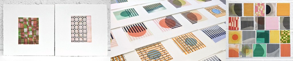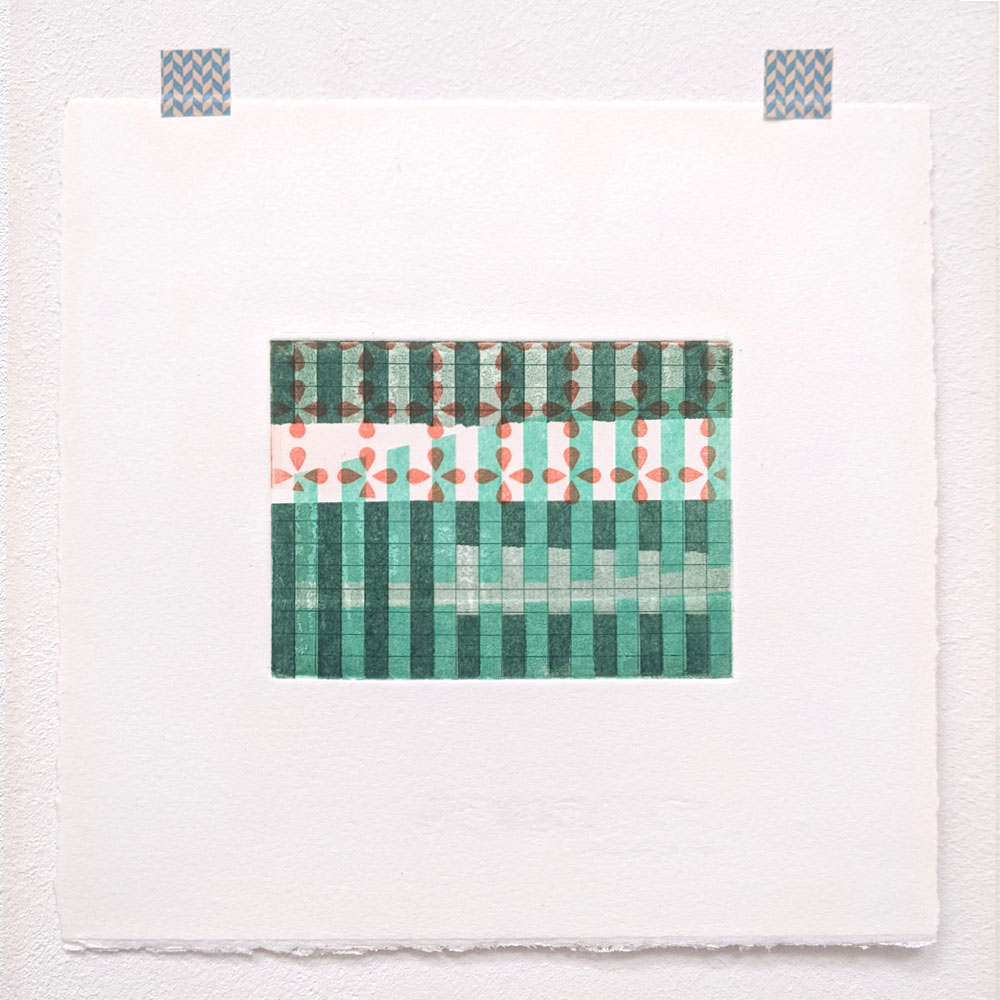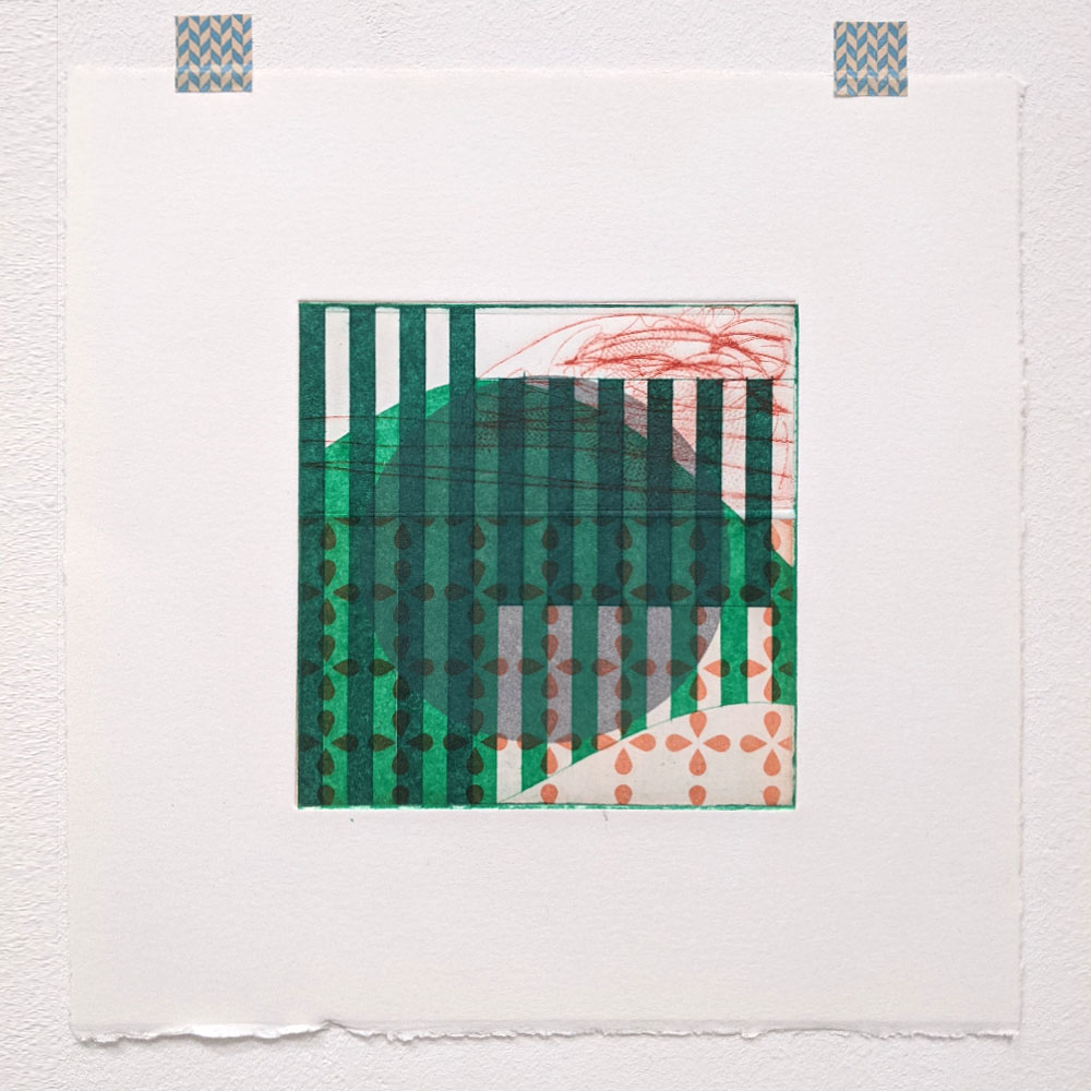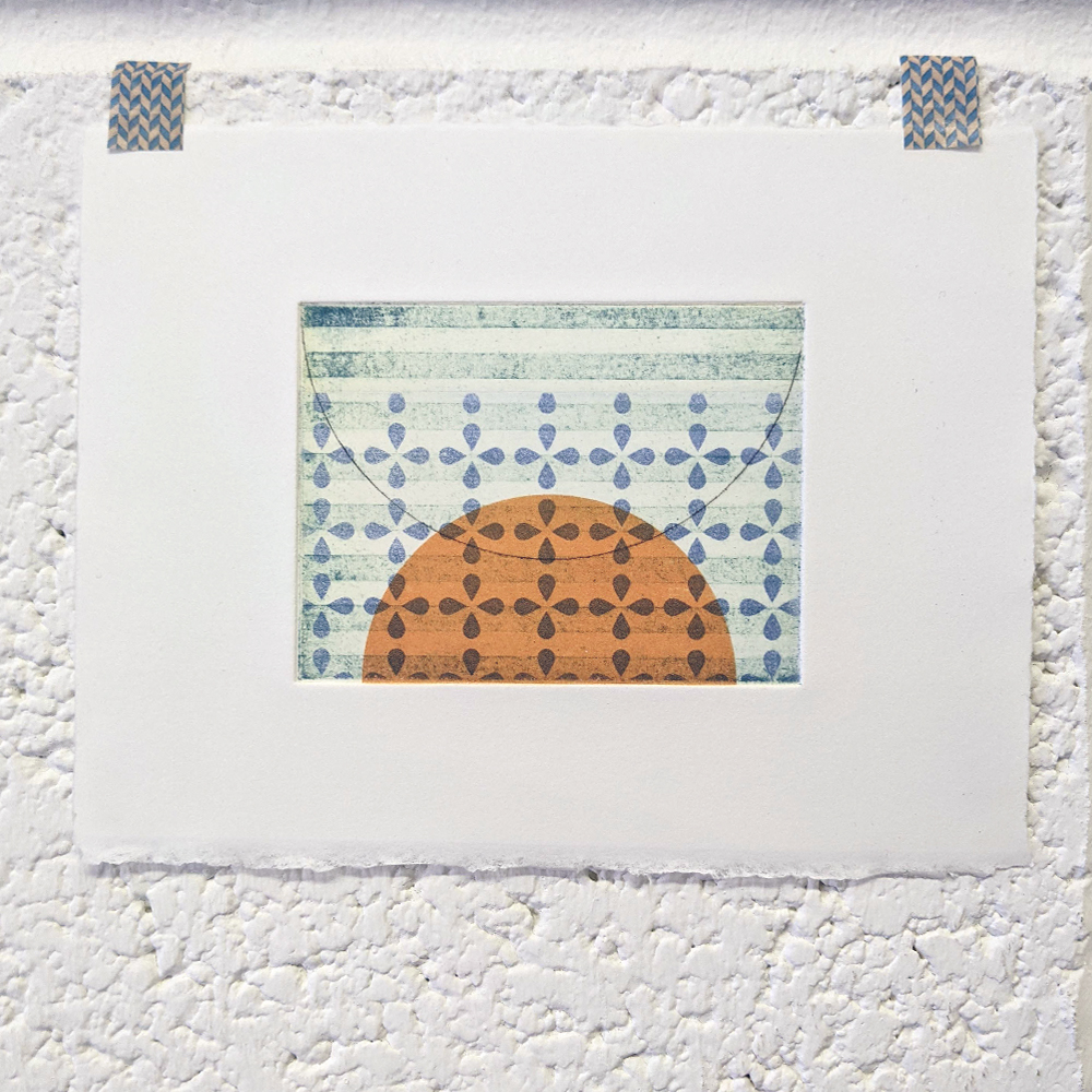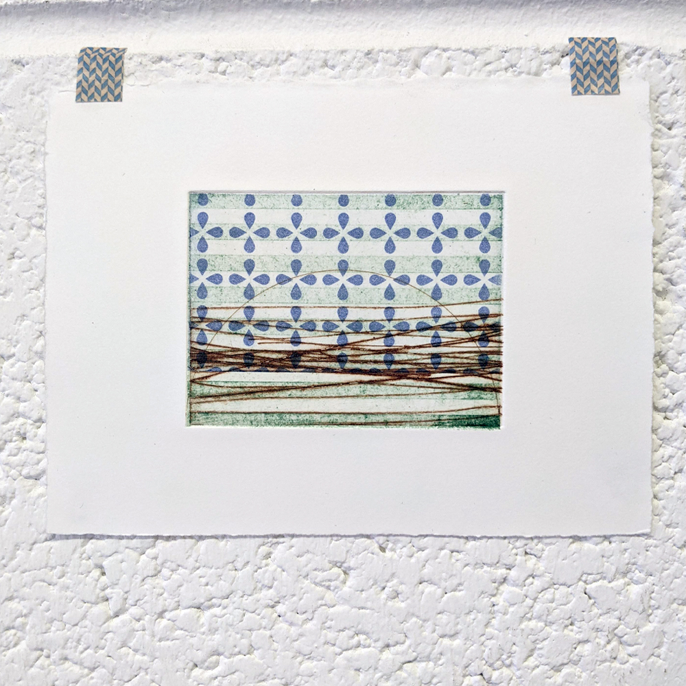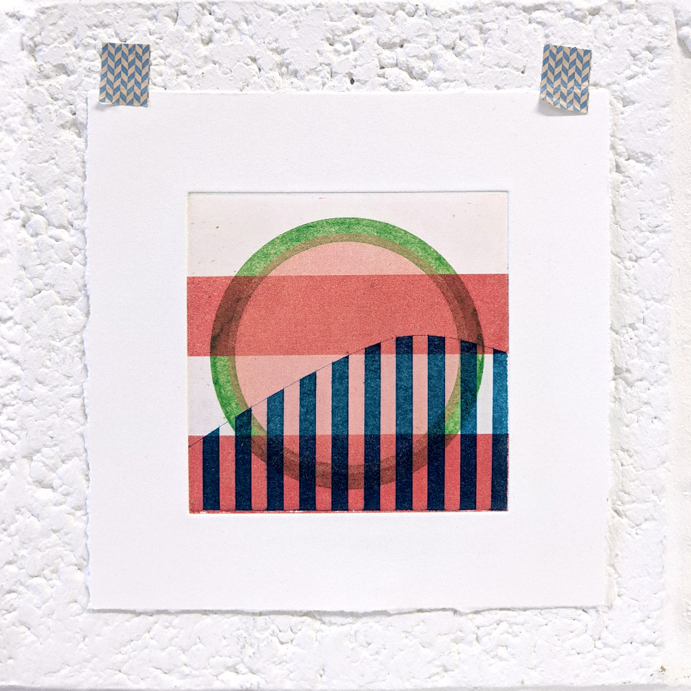 These multi-plate monotypes are how I think, draw, and test. I keep a library of small plates, made using less toxic, more sustainable methods and substrates, and use them again and again. They are printed on good printmaking papers, mostly Somerset, Hahnemühle and Fabriano, with torn and deckled edges.