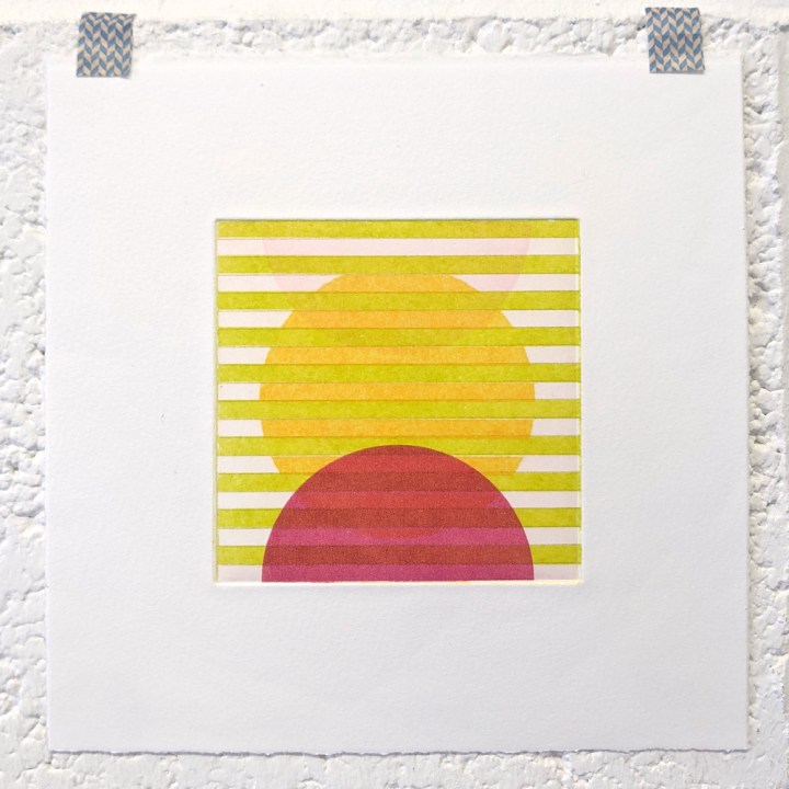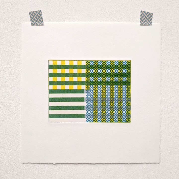 These multi-plate monotypes are how I think, draw, and test. I keep a library of small plates, made using less toxic, more sustainable methods and substrates, and use them again and again. They are printed on good printmaking papers, mostly Somerset, Hahnemühle and Fabriano, with torn and deckled edges.